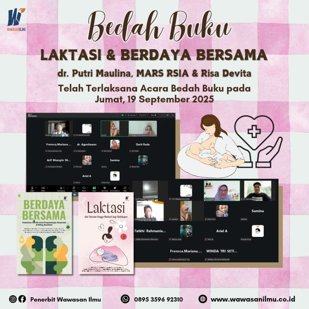 Penerbit Wawasan Ilmu mengucapkan terima kasih kepada Penulis, Moderator dan Peserta Bedah Buku “LAKTASI dari Hormon hingga Manfaat bagi Kehidupan & BERDAYA BERSAMA Pendekatan Holistik dalam Pengembangan Masyarakat di Bidang Kesehatan” pada tanggal 19 September 2025, atas partisipasinya. Semoga bermanfaat dan dapat menjadi motivasi bagi para peserta untuk menulis buku.