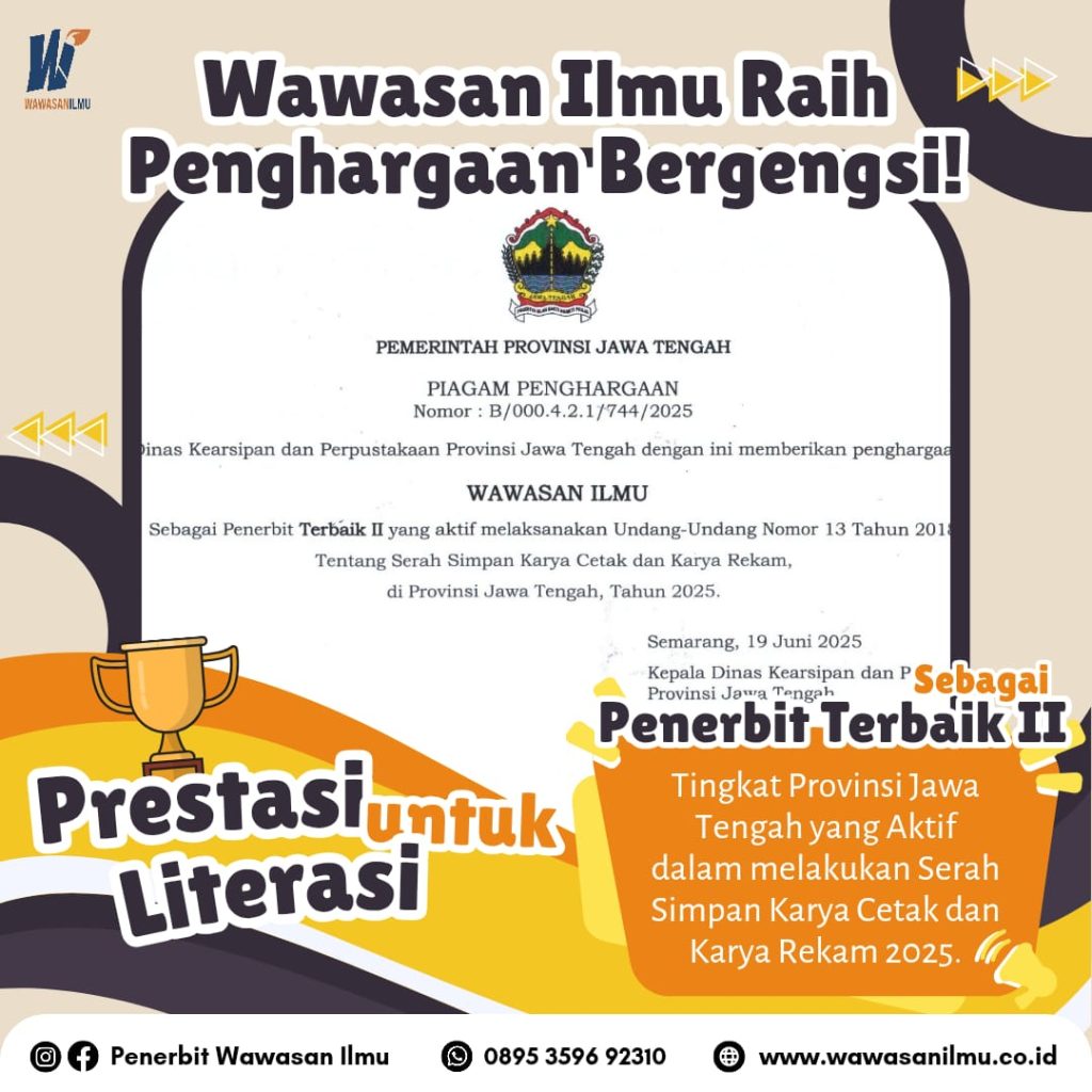 Penerbit Wawasan Ilmu – Wawasan Ilmu, dengan bangga menerima Penghargaan Penerbit Terbaik II Provinsi Jawa Tengah Tahun 2025 dari Dinas Kearsipan dan Perpustakaan Provinsi Jawa Tengah, Senin (11/8). Penghargaan ini diserahkan dalam acara Lokakarya Serah Simpan Karya Cetak dan Karya Rekam, sebagai peraih penghargaan terbaik II dari enam penerbit yang patuh terhadap Undang-Undang Nomor 13 Tahun 2018 tentang Serah Simpan Karya Cetak dan Karya Rekam. Tujuannya adalah untuk melestarikan kekayaan intelektual bangsa, membangun koleksi nasional, serta memastikan bahwa karya-karya tersebut dapat diakses oleh masyarakat luas untuk kepentingan pendidikan, penelitian, dan budaya.